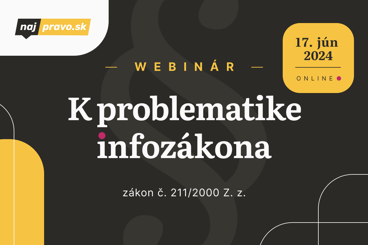 Najprávo.sk začína písať novú etapu svojej činnosti a dovoľuje si Vás pozvať na prvý webinár, ktorý sa bude týkať zákona č. 211/2000 Z. z. o slobodnom prístupe k informáciám. Za tri hodiny vám ponúkneme odpovede na najdôležitejšie otázky spojené s touto právnou úpravou.