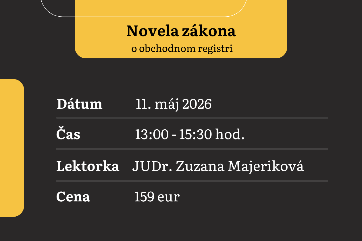 Najprávo.sk pripravuje nový webinár. Kedy? V pondelok 11. mája 2026 o 13:00. Lektorka JUDr. Zuzana Majeriková vás prevedie kľúčovými aspektmi schváleného zákona č. 29/2026 Z. z. o obchodnom registri.